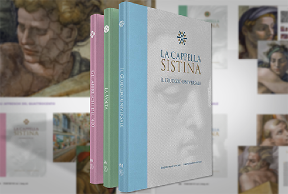 Wertvolle dreibändige Fotomonographie über die Sixtinische Kapelle in eleganter Kassette, erhältlich in italienischer und englischer Sprache, herausgegeben in Gemeinschaftsausgabe mit Scripta Maneant.