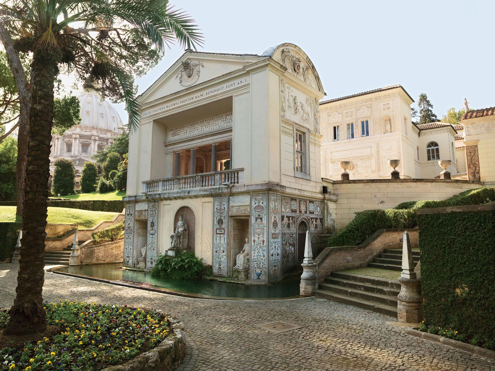 Ab dem späten 15. Jahrhundert wurde der Garten durch verschiedene architektonische Maßnahmen weiter aufgewertet. So ließ Papst Innozenz VIII. Cybo (1484–1492) das sogenannte Belvedere-Schlösschen errichten: einen Ruheort mit einem weiten Blick auf Rom. Auch das von Donato Bramante (1444–1514) im Auftrag von Papst Julius II. della Rovere (1503–1513) entworfene Projekt eines großen Innenhofes, ebenfalls „Belvedere“ genannt, war Teil dieser Maßnahmen. 1565 errichtete der einfallsreiche Architekt Pirro Ligorio (1512/13–1583) für Papst Pius IV. Medici von Marignano (1559–1565) die nach diesem benannte „Casina“ mit Loggia, die er meisterhaft in die vatikanische Grünanlage einfügte, unweit des Apostolischen Palastes. Sein Nachfolger, Papst Pius V. Ghislieri (1566–1572), ließ die Gartenanlage weiter ausbauen und mit exotischen und seltenen Pflanzen schmücken. Diese waren von dem Botaniker Michele Mercati und dem Bologneser Gelehrten Ulisse Aldrovandi gesammelt worden und ergänzten die vielen seltenen Exemplare, die dem Papst aus aller Welt geschenkt worden waren. Mercati legte zudem wunderbare Blumenbeete und bunte Hecken an, die nach dem damaligen Trend der italienischen Gärten in kunstvollen geometrischen Mustern angeordnet waren.