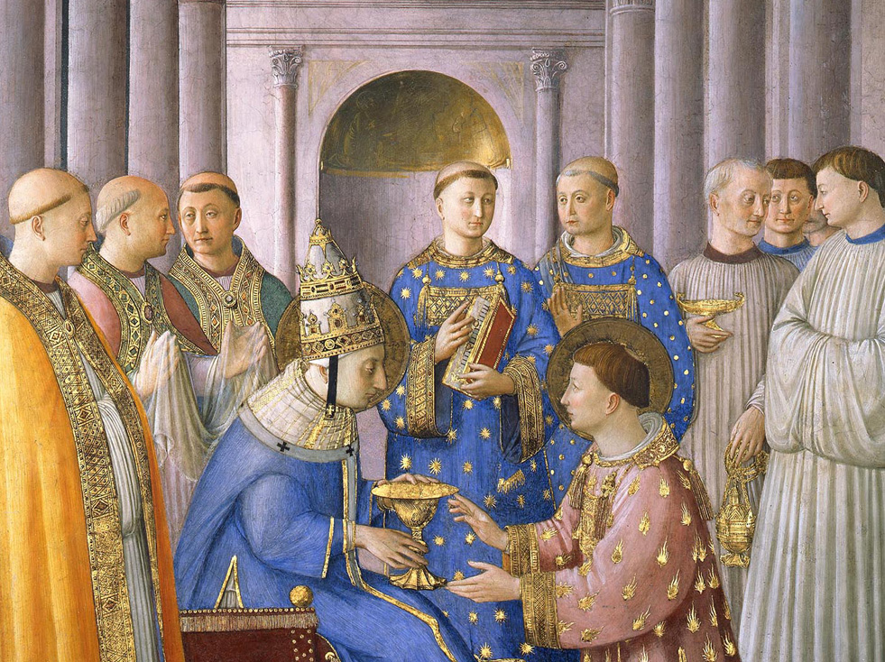 Situated in the heart of the Apostolic Palace, close to Raphael’s logge and the areas where the apartment of Julius II and Leo X would later be established, the Niccoline Chapel owes its name to Pope Nicholas V (Tommaso Parentucelli, 1447-1455), who ordered its construction corresponding to the final two floors of the tower constructed at the behest of Innocent III (1198-1216), the fourth pontiff bearing the name (1243-1254), protecting a pre-existing palatial core. The sumptuous decoration of the Chapel, ascribable to the Dominican Fra Angelico (or Beato Angelico) by two payments made in February and March 1448, is one of the great works of fifteenth-century Italy and is probably the peak of what may be defined as the Florentine painter’s “Christian humanism”. The frescoes which cover the interior begin on the wall to the right of the altar, in the direction of the Pope’s private rooms, and develop in two overlapping registers along the entire perimeter of the space, concluding on the opposite wall towards the camera paramenti superior, the seat of the Guardia dei Lanzi. There are illustrated episodes from the life of Sts. Steven and Laurence, expressed in parallel in accordance with the rhetorical law of correspondence, starting with their respective diaconal consecrations and continuing with their generous witness of faith, culminating in their martyrdom. The ceiling, divided into four sail-shaped sections by the ribs of the vault, is dominated by the portrayal of the Four Evangelists, whose authority – on which the foundations of Christian doctrine rest – is symbolically transmitted to the eight Doctors of the Church, represented in niches on the arches framing the walls. Although there are numerous references to antiquity in the architecture and poses, a fully Renaissance character may be seen in the moral force that emanates from the varied humanity of the frescoes, heroic and dignified as the protagonists of classical history.