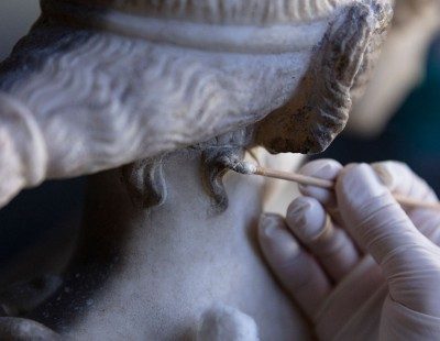 From 22 September, visitors to the Pope’s Museums will have the privilege of being able to admire, in all its entirety and rediscovered splendour, the Vatican sculptural group of the Three Graces, exceptionally and temporarily removed from its precious niche in the Cabinet of the Masks (Pio-Clementine Museum). The celebrated Roman age marble triad – produced in the first decades of the second century A.D. by an anonymous artist – will be the centre-piece of the exhibition “The Dance of the Graces” in the Vatican Pinacoteca (Hall XVII), in the wake of the delicate restoration intervention coordinated by the Department of Greek and Roman Antiquities and carried out by the Stone Materials Laboratory, in collaboration with the Cabinet of Scientific Research applied to Cultural Heritage.