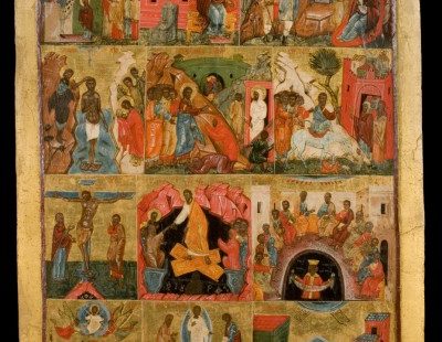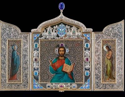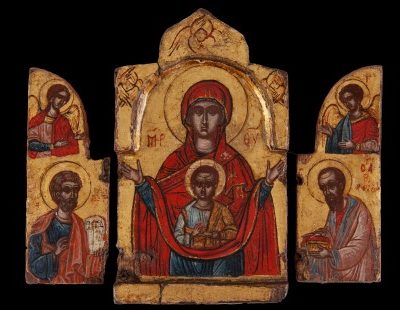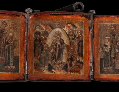 The works on display – depicting characters and scenes from the life of Jesus, Mary and the Saints – were created over a broad chronological span (fifteenth to early twentieth century) and are an expression of the profound bond uniting centuries, generations and territories. The materials used are also diverse, from tempera on panel to oil or mixed techniques, not to mention the precious metal covers (rizas) enriched with enamels and precious stones. Also significant is the typological variety of artefacts on display: votive icons, for liturgical use and personal prayer, travel triptychs and Menologi.