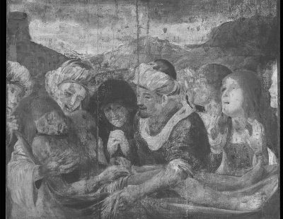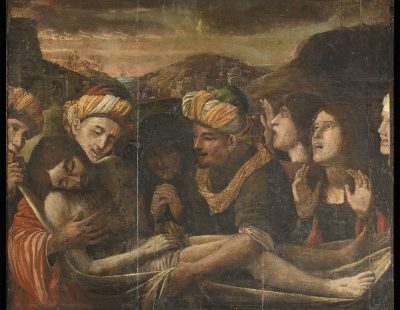It is the painting of the Deposition of Christ, now conserved in the Shrine of the Blessed Virgin Mary of the Rosary of Pompeii, which corresponds iconographically to the canvas executed by Mantegna for the Basilica of San Domenico Maggiore in Naples.