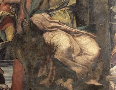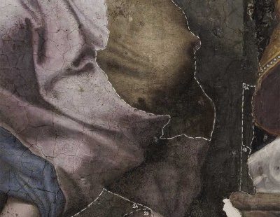 At the end of the decade-long restoration of the pictorial cycle of the Hall of Constantine, it can be affirmed without any doubt that the wall paintings, the two figures painted in oil by Raphael and the four frescoes by Giulio Romano and del Penni, his collaborators, together with the subsequent decoration of the ceiling by Laureti, represent in their different painterly approaches a renewed and extraordinary record, a true palimpsest, of painting in Rome from the first to the last decades of the 16th century.
