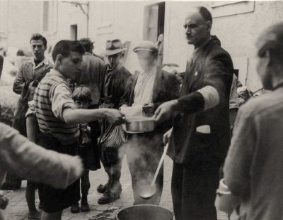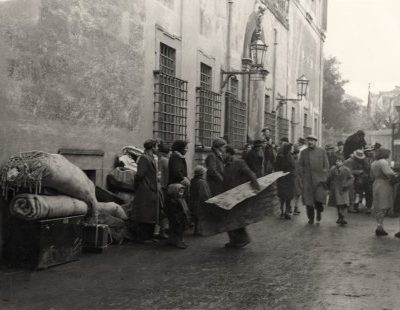 Through photographic images, historic footage, interviews with survivors and objects from the period, the exhibition “Castel Gandolfo 1944” presents, for the first time in one of the very places that were the theatre of the events narrated, a rich documentary heritage of the daily life, at times happy, at times painful, of this new “city of refugees”, who camped everywhere, in the rooms, halls, stairways, gardens or among the archaeological ruins of the cryptoporticus of the Villa of Domitian. In addition to the photographic evidence, there are also films and unpublished documents found buried among the papers of the Archive of the Pontifical Villas, recently recovered and reordered for the purpose of this initiative.