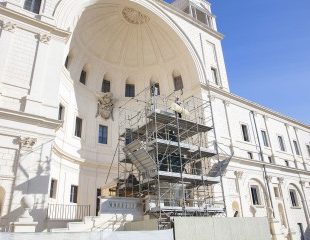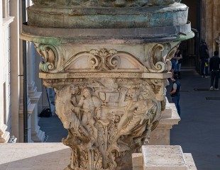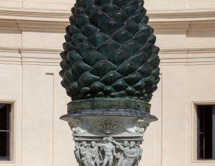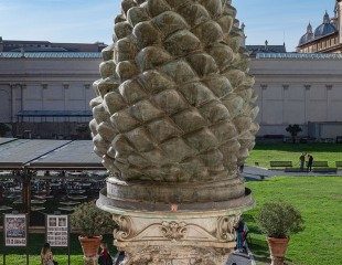 Following the completion of its restoration, and freed from the scaffolding that caged it for more than ten months, thanks to the lockdown, the colossal pinecone located in the exedra of the Niche of the Belvedere of the Vatican Museums once again offers itself to the admiring gaze of visitors who enter the large courtyard to which it lends its name, the Courtyard of the Pinecone.