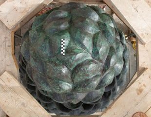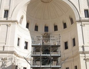 The restoration of the Pina di San Pietro, as it is referred to by Dante in the 31st Canto of his Inferno, was carried out by the Vatican Museums Metals and Ceramics Restoration Laboratory and the Stone Materials Restoration Laboratory under the scientific direction of the Department of Greek and Roman Antiquities. The intervention, made possible by the generous support of the Patrons of the Arts in the Vatican Museums, forms part of the more extensive and complex restoration project initiated in 2015 regarding the consolidation, as well as the painting with neutral colours, of all the internal surfaces of the Courtyard of the Pinecone.