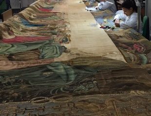 Envuelto en una atmosfera especialmente simbólica y solemne, el tapiz recién restaurado volverá a Francia, del 7 de junio al 2 de septiembre, para ser mostrado en la exposición “La Cène de Léonard de Vinci pour François Ier, un chef-d'oeuvre en or et soie” montada precisamente en el lugar —el Castillo de Clos Lucé en Amboise— donde el gran Leonardo da Vinci murió hace 500 años, ese famoso 2 de mayo de 1519.