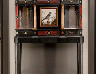 El corazón de la instalación lo constituye la disposición de las obras en los armarios originales del siglo XVIII de la Galería, mobiliario concebido originalmente para custodiar el saber y que hoy se transforman en relicarios destinados a acoger el arte del detalle.